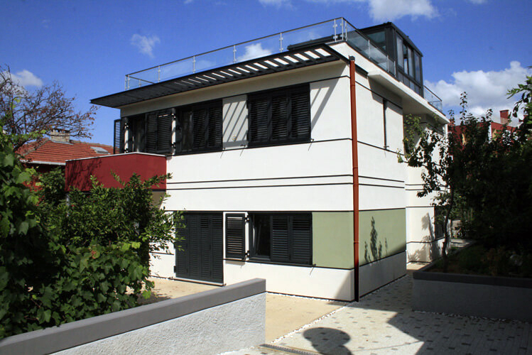 İstanbul, Beylerbeyi, Koru Mevkii’nde bahçe içinde 2 normal kat ve bir çatıdan oluşan yığma kâgir villa güçlendirilerek yeniden restore edilmiş ve yeni modern kimliğine kavuşturulmuştur.