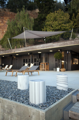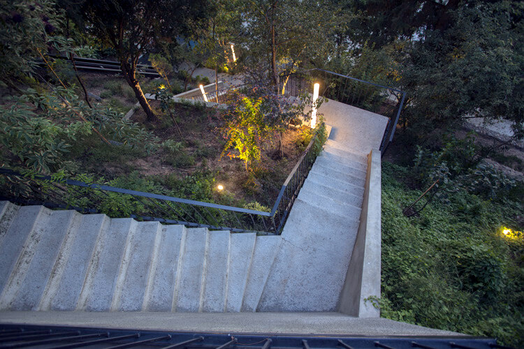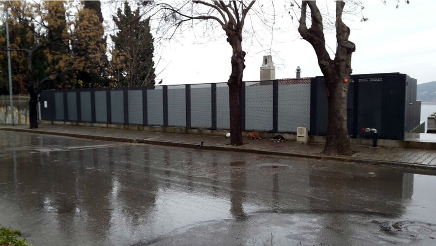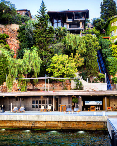 Çok dik ve zorlayıcı arazi şantiye koşullarına göre yerinde özel çözümler gerektirmiştir. Eğimli asansörden çelik merdivenlere; çatı yapısına; pencere ve dış mekân kaplamalarına, hemen her imalat firmamız tarafından özel imal edilmiş ve yerine uygulanmıştır.