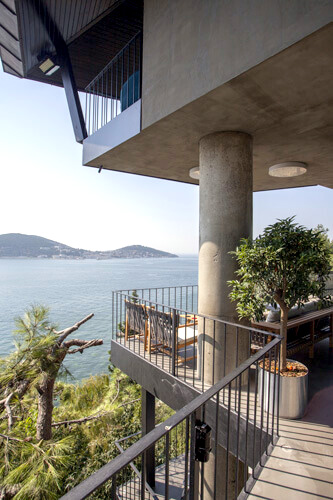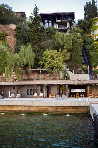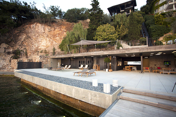 Özel mülk olan kıyı şeridi villası betonarme karkas olan ana iskeleti ile özgün bir ahşap çatı makas sisteminin bütünleşmesinden oluşturulmuştur. 650 m2 kapalı alanı ve ilave dış mekân çelik açık yapıları ve birimleri ile toplam 950 m2 alana ulaşan yapı 2200 m2 ’lik bir araziye oturmaktadır.