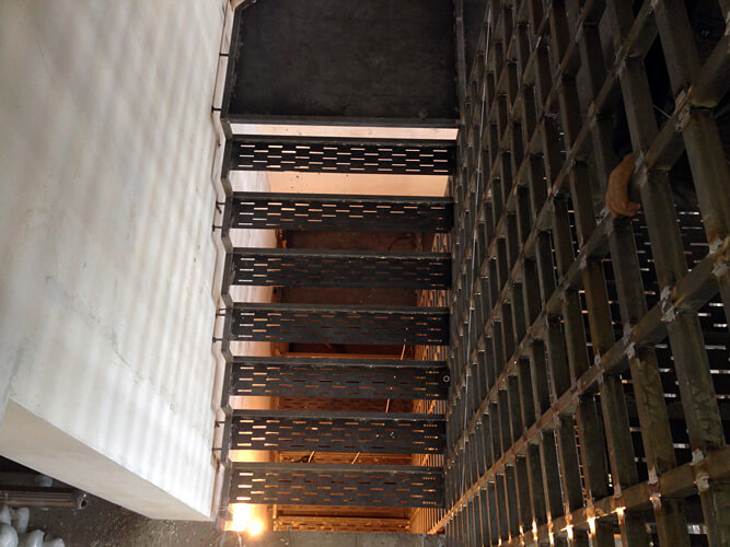Örn; merdivenler, mermer plakalar ve hatta sabit kütüphane mobilyası gibi parçalar atölyede yerinde ölçüye göre imal edilmiş ve yapıda yerinde bir araya getirilerek montajı tamamlanmıştır.